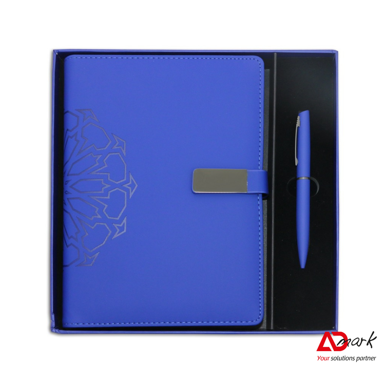 Un indispensable du bureau : carnet personnalisé accompagné d’un stylo élégant, pour marquer les esprits lors de réunions, salons ou cadeaux d’affaires.